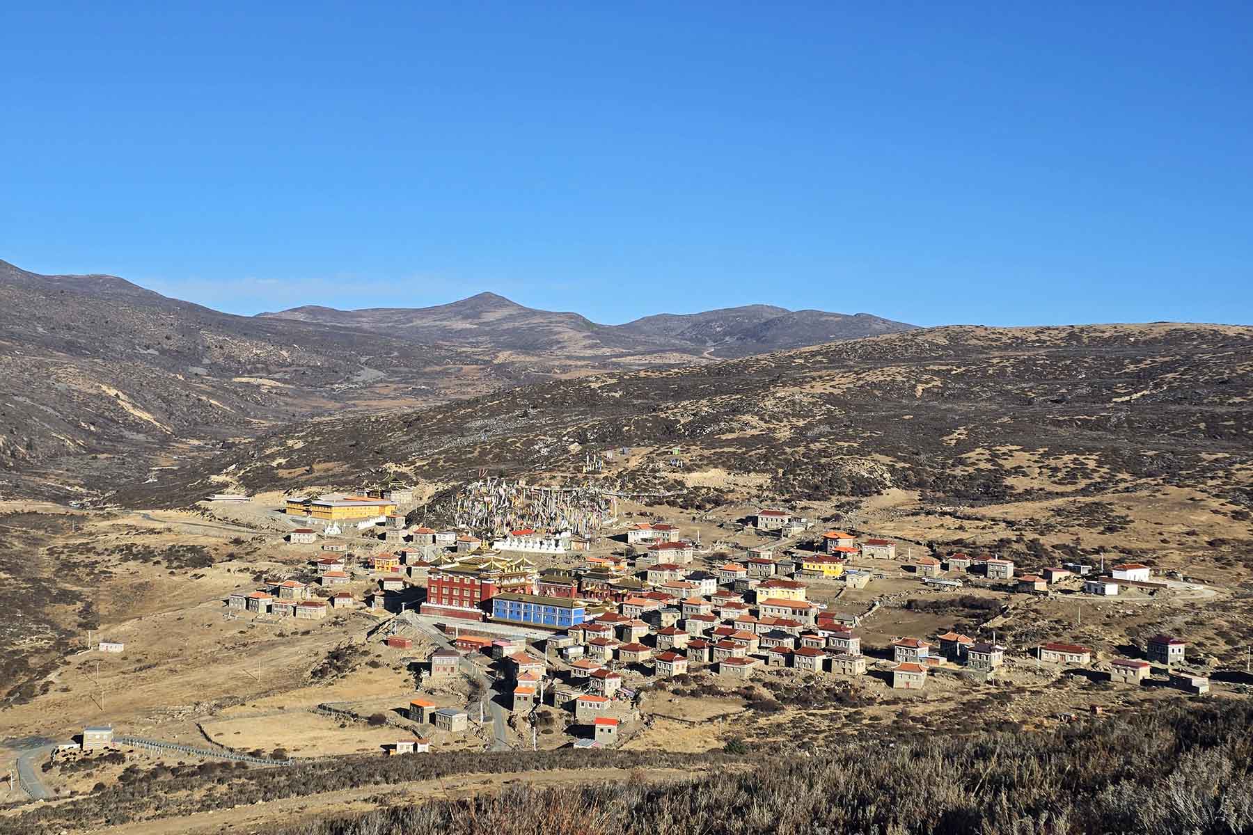 Start by the hiking start point at around 4000m and walk through the forests onto the more open shrub and grass mountain top to gain views from the west of Minya Konka Mountain Range. The walking up by the first part can be strenuous due to the ascent by high altitude above 4000m. You are recommended to start slow or at your own pace and accustom yourself gradually to the altitude and do not stress yourself too much. We will ascend from around 4000m to the highest by around 4400m by the high point over the ridge. During most time of our hiking we shall see the view of Minya Konka Range mountains when the weather is clear. The whole trek will be above 4000m with the highest at 4400m. We will end our trek by Guwa Monastery where we will have a visit to the big monastery while waiting for our ride to our camp. Guwa Monastery is a Gelugpa monastery with a history of over 400 years old. We may walk inside the village that is built on the mountain side by end of our trek today.