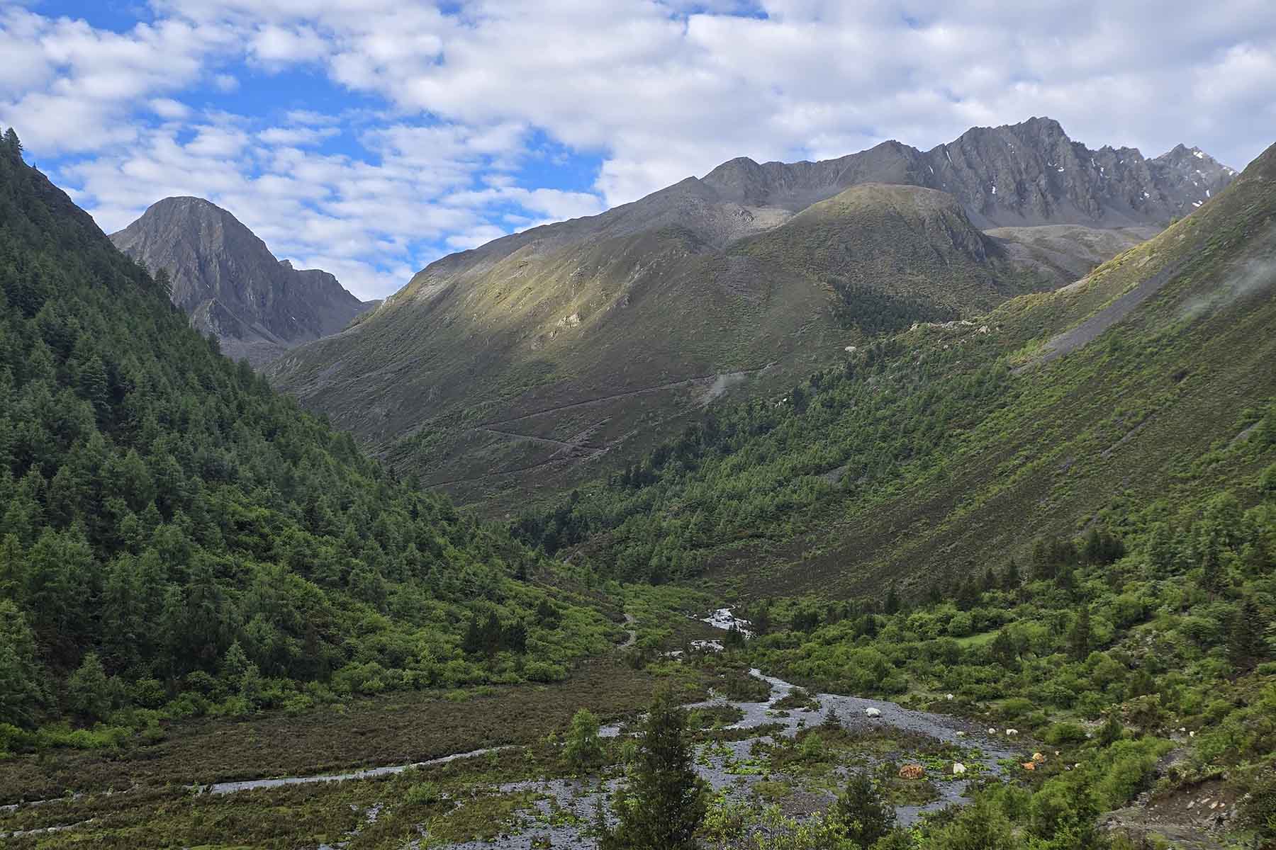 Today is an easy day as we go higher up the valley on gradual and easy terrain. We don’t have to rush today but rather just take our time to enjoy the nature of mountains, forests, river and possibly wildlife and birds. We will pass by a couple of nomads settlement and have chance to greet the yak-herding Muya Tibetans and maybe have a chat too. All day we will follow the river and valley up and set camp by above the last village at around 4000m. We will arrive camp by early afternoon and have time to rest and relax and orient ourselves to the higher altitude. Feel free to walk around the village to explore local Tibetan nomads life after we arrive our camp today.